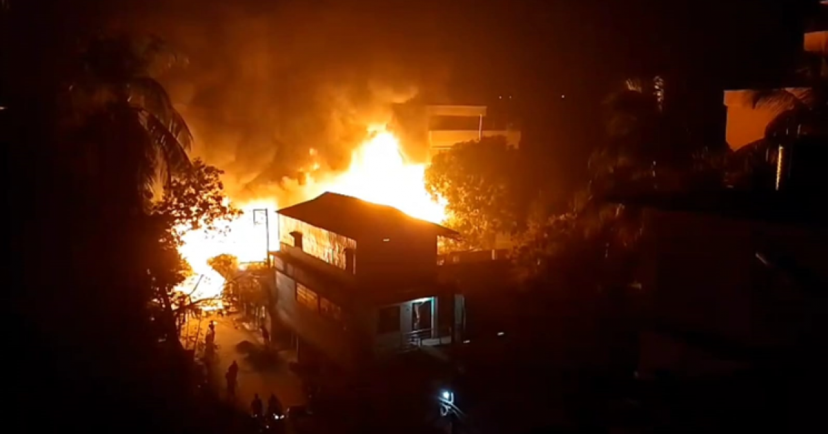 Six residential houses and a restaurant were completely gutted in a devastating fire that broke out early Monday in Ujani Para of Bandarban municipality. The fire erupted around 6 am