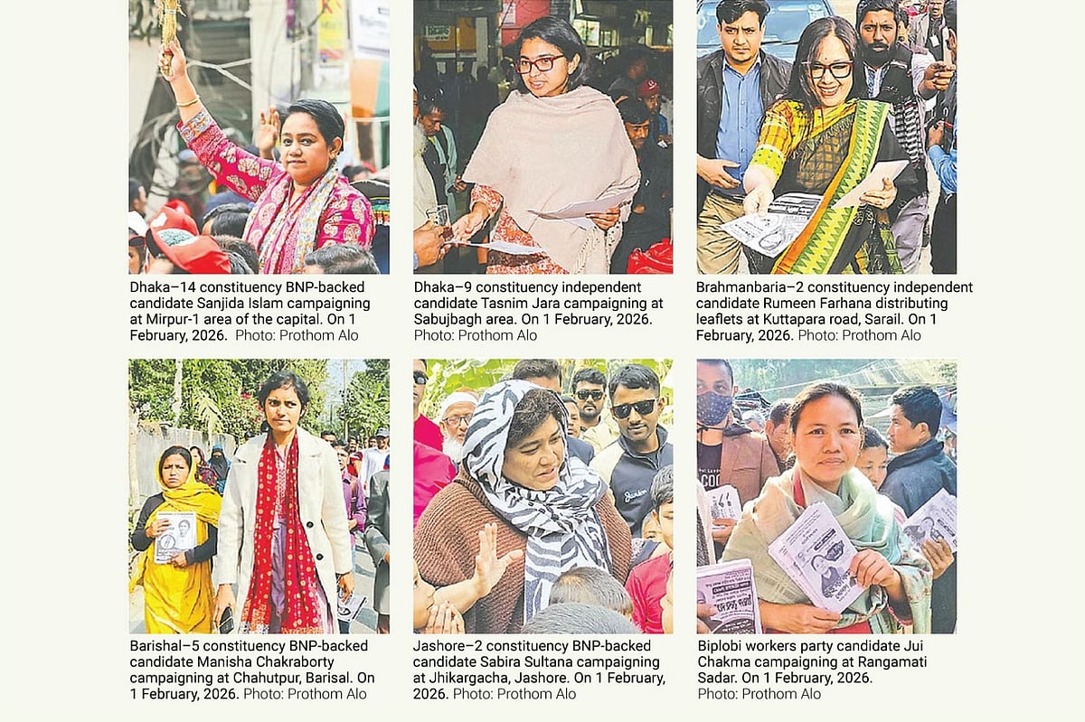 Sanjida Islam, Tasnim Jara, Rumeen Farhana, Manisha Chakraborty, Sabira Sultana and Jui Chakma, along with many other women candidates, are tirelessly traversing the electoral field