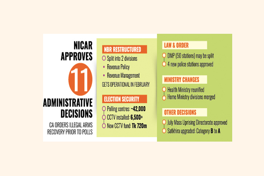 The interim government on Tuesday approved some administrative-restructuring decisions with a view to improving "transparency, efficiency and accountability" across key state institutions. At a meeting of the National Implementation Committee