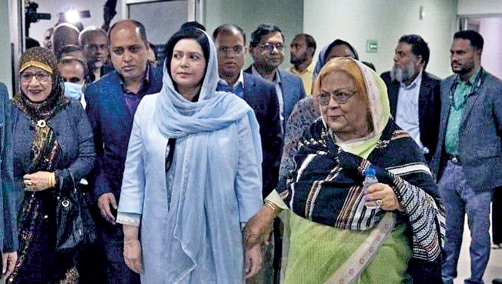 After arriving, she went directly to Evercare Hospital to visit Khaleda Zia.