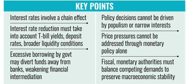 "Policy decisions cannot be driven by populism or narrow interests," he said, adding that the fiscal and monetary authorities must balance competing demands to preserve macroeconomic stability.